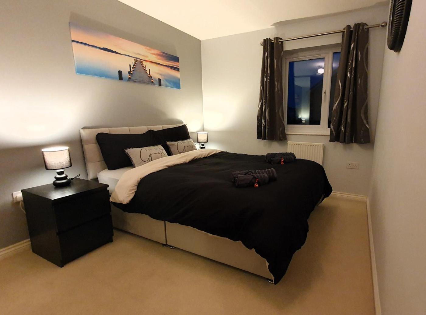 Three-Bedroom House. This holiday home comes with 2 living rooms, 3 separate bedrooms and 3 bathrooms with a shower and a hairdryer. In the well-equipped kitchen, guests will find a refrigerator, an oven, a microwave and a toaster. This holiday home has a washing machine, flat-screen TV with streaming services, garden views, as well as chocolate for guests. The unit has 4 beds.