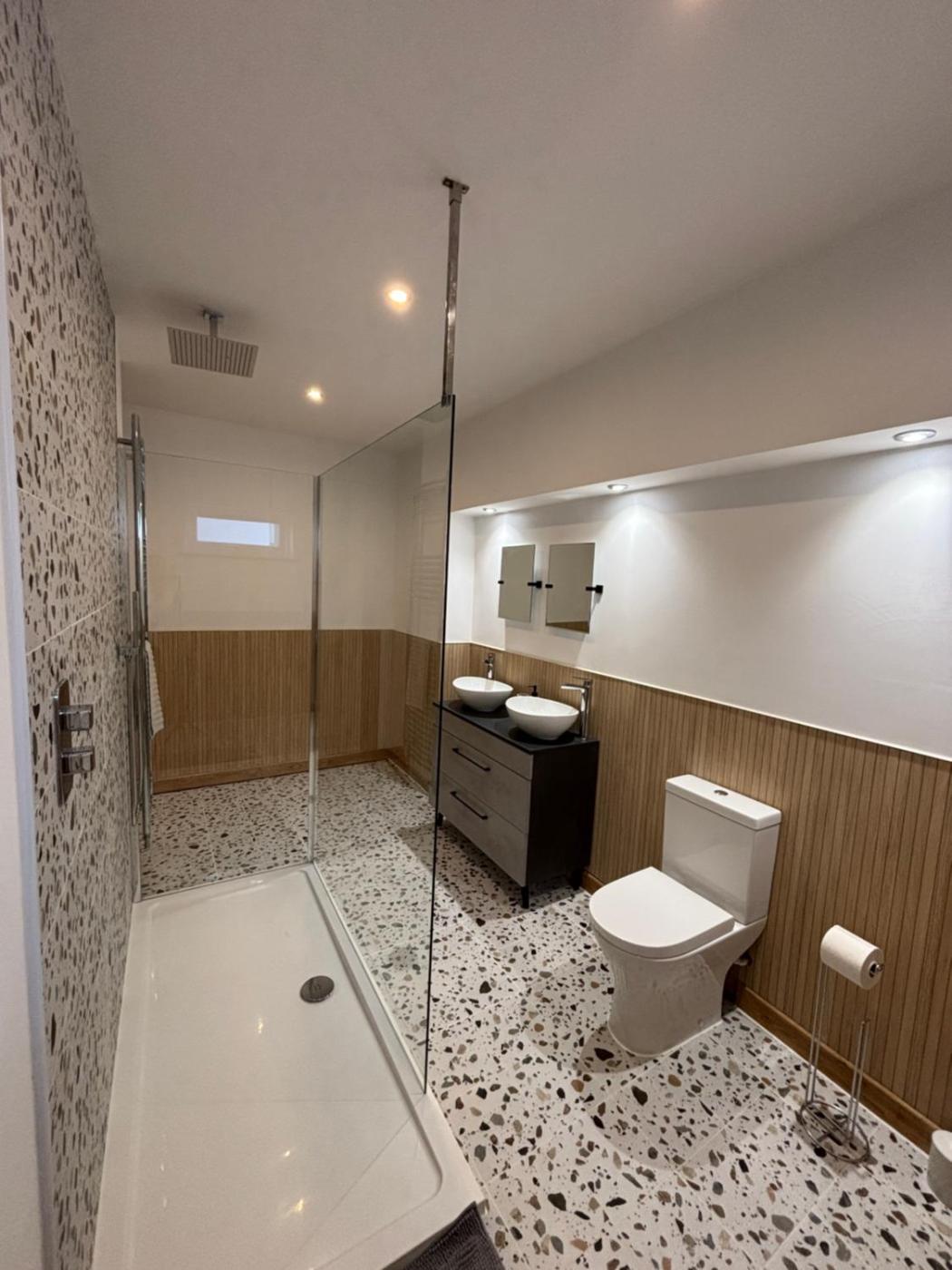 Five-Bedroom House. Guests will have a special experience as this holiday home offers a private pool and a hot tub. Featuring a private entrance, this holiday home comprises 1 living room, 5 separate bedrooms and 5 bathrooms with a bath and a shower. Meals can be prepared in the well-fitted kitchen, which comes with a stovetop, a refrigerator, a dishwasher and an oven. Boasting a terrace with garden views, this holiday home also provides a washing machine and a flat-screen TV with streaming services. The unit offers 5 beds.