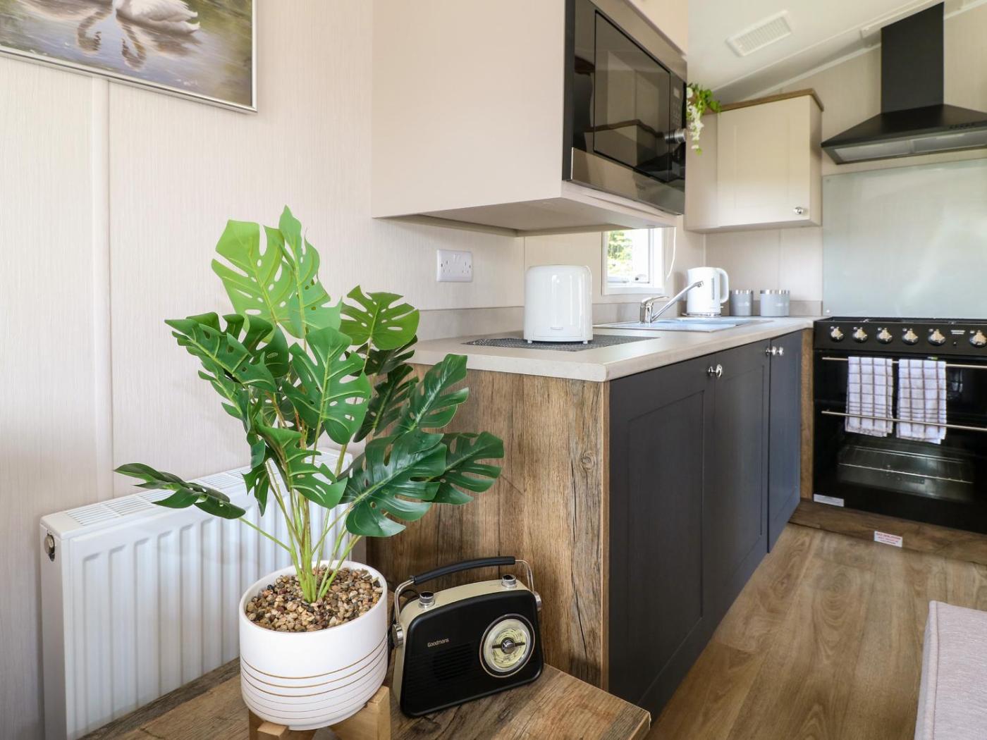 Holiday Home. The hot tub is a top feature of this holiday home. This holiday home comes with 2 bedrooms, a seating area with a sofa and 1 bathroom with a walk-in shower. Guests can make meals in the kitchen that features a stovetop, a refrigerator, an oven and a microwave. The holiday home features a dining area, a wardrobe, an electric kettle, heating, as well as a TV. The unit has 3 beds.