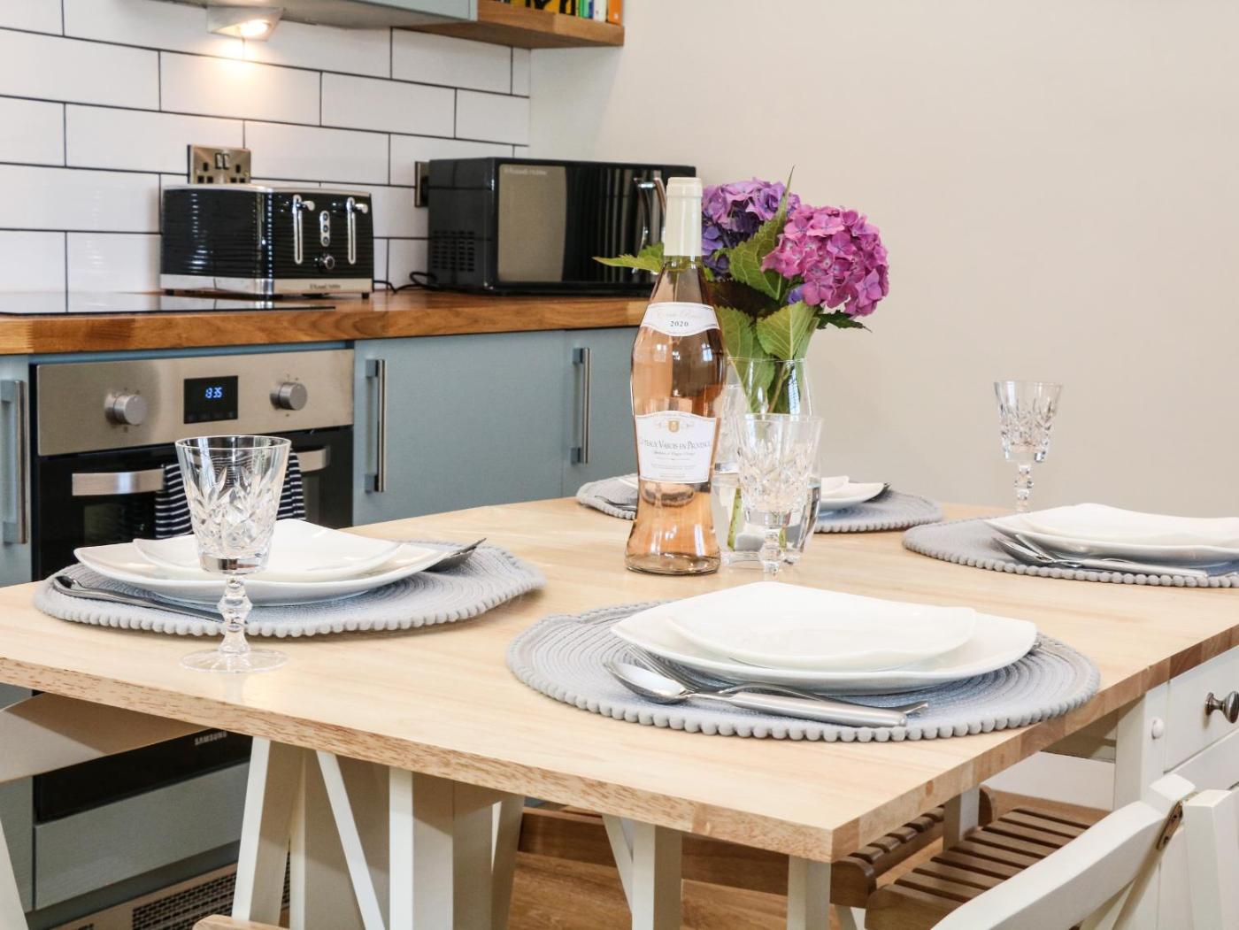 Holiday Home. This holiday home features a fireplace. This holiday home features 2 bedrooms, a seating area with a sofa and 1 bathroom with a shower. Guests can make meals in the kitchen that has a stovetop, a refrigerator, a dishwasher and an oven. The holiday home features a washing machine, a dining area, a wardrobe, an electric kettle, as well as a TV. The unit has 3 beds.