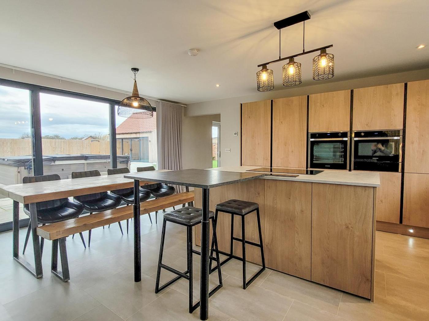 The 4-bedroom holiday home is fitted with a fully equipped kitchen with a dishwasher and 5 bathrooms with a hot tub, a shower and a washing machine. Towels and bed linen are offered in the holiday home. The accommodation offers a fireplace.