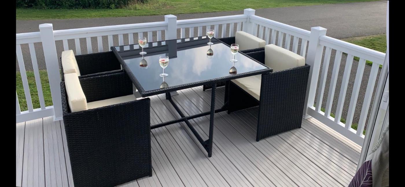 Caravan. This mobile home includes 3 bedrooms, a seating area and 2 bathrooms with a shower and a hairdryer. This mobile home has a dining area, a wardrobe, a flat-screen TV with streaming services and an outdoor dining area. The unit has 5 beds.