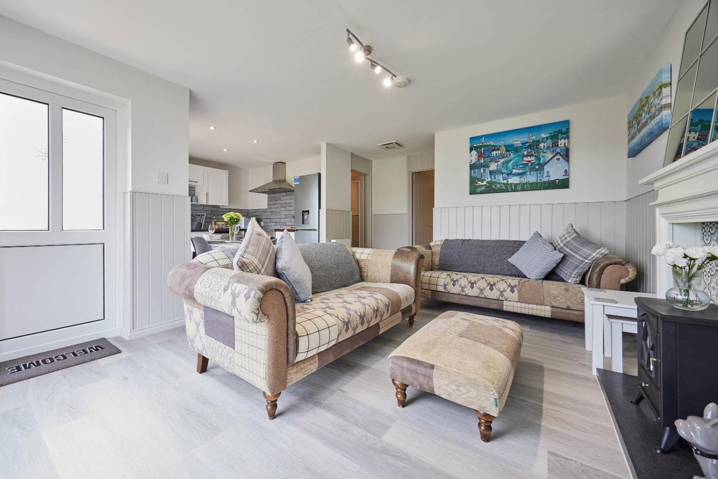 The 3-bedroom holiday home comes with a living room with a flat-screen TV with streaming services, a fully equipped kitchen with a dishwasher and an oven, and 2 bathrooms with a hair dryer. Towels and bed linen are featured in the holiday home. There is also a seating area and a fireplace.