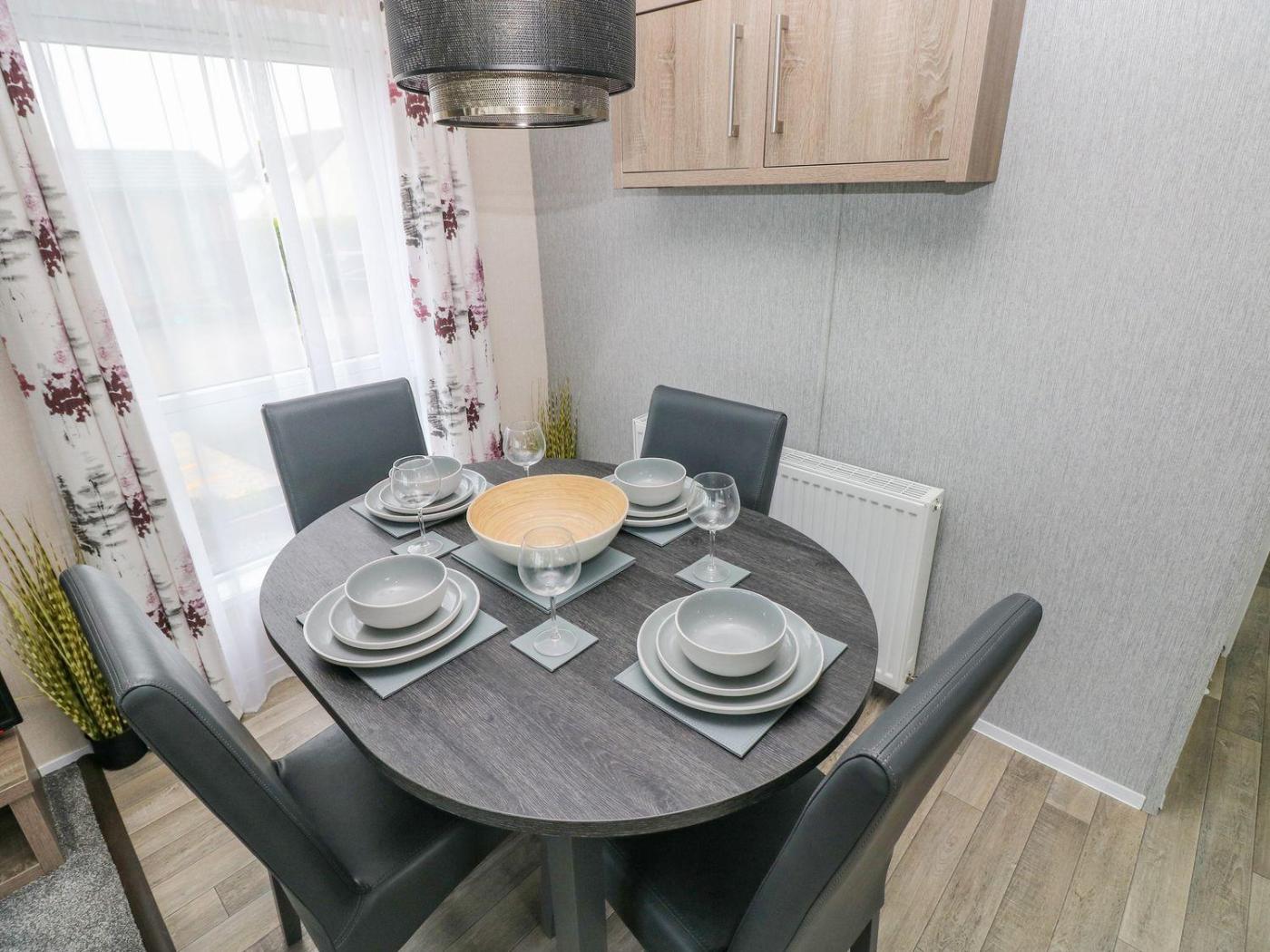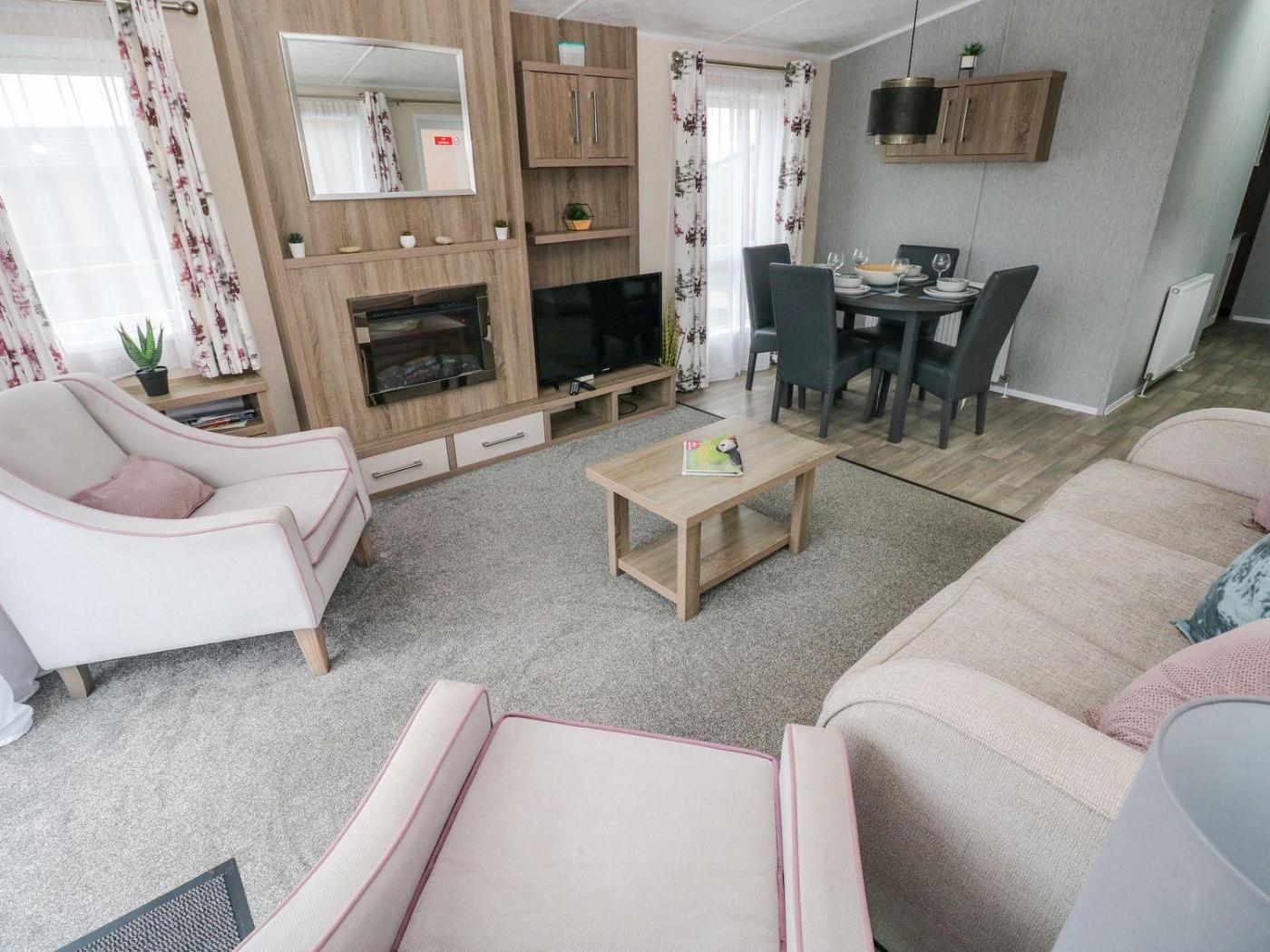 Holiday Home. This holiday homes standout features are the hot tub and fireplace. This holiday home consists of 2 bedrooms, a seating area with a sofa and 1 bathroom with a walk-in shower. The well-fitted kitchen features a stovetop, a refrigerator, a dishwasher and an oven. The holiday home provides a dining area, a wardrobe, an electric kettle, a TV, as well as sea views. The unit offers 3 beds.