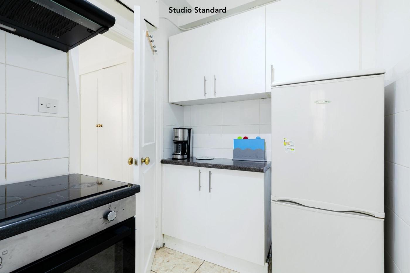 Standard Apartment. This apartment consists of 1 living room, 1 separate bedroom and 1 bathroom with a bath and a hairdryer. Guests can make meals in the kitchen that is equipped with a refrigerator, an oven, a microwave and a toaster. The apartment provides a flat-screen TV with cable channels, a washing machine, a tea and coffee maker, a seating area as well as city views. The unit offers 2 beds. ;