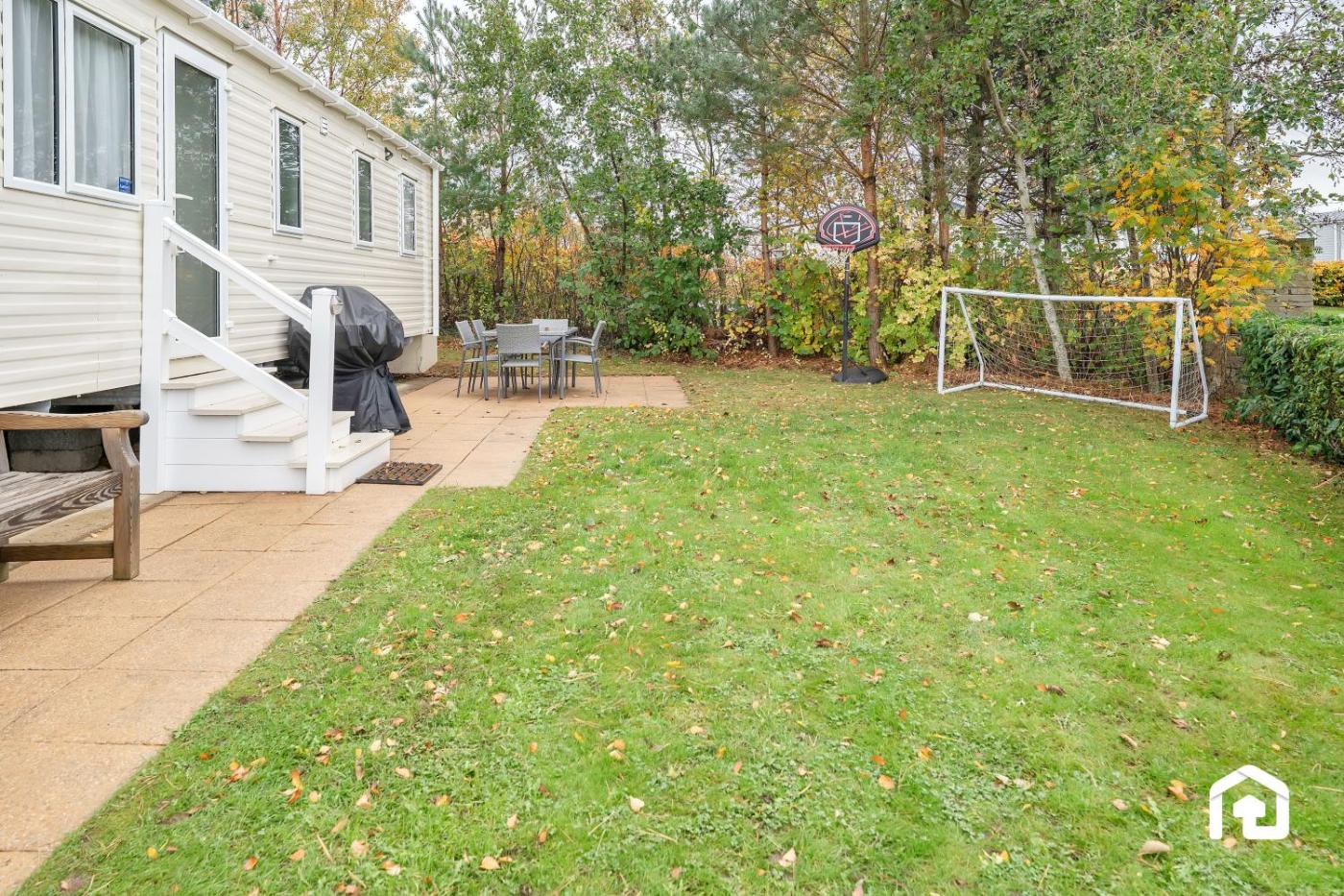 A water park and outdoor play equipment are available for guests at the holiday home.