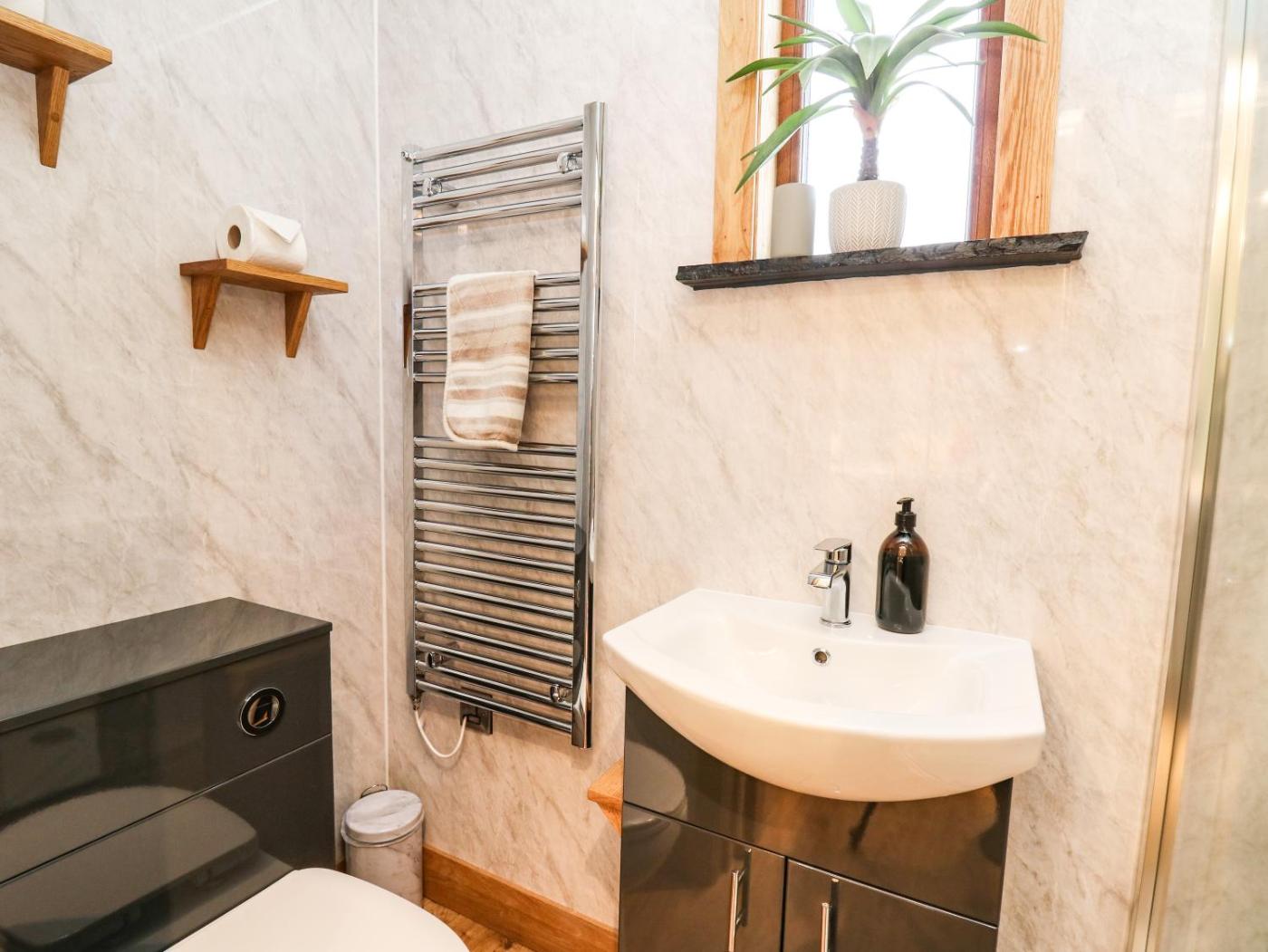Holiday Home. This holiday homes special features are the hot tub and the fireplace. This holiday home is comprised of 1 bedroom, a seating area with a sofa and 1 bathroom with a walk-in shower. Guests can make meals in the kitchen that is fitted with a stovetop, a refrigerator, a microwave and an electric kettle. The holiday home offers a dining area, a wardrobe, a high chair for children, heating, as well as a TV. The unit offers 1 bed.