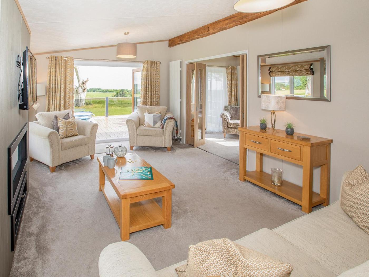 Two-Bedroom Holiday Home. This holiday home features a hot tub. Boasting a private entrance, this holiday home features 2 bedrooms and 1 bathroom with a shower. The holiday homes kitchen, which features a dishwasher, is available for cooking and storing food. This holiday home has a washing machine, heating and a TV. The unit has 3 beds.