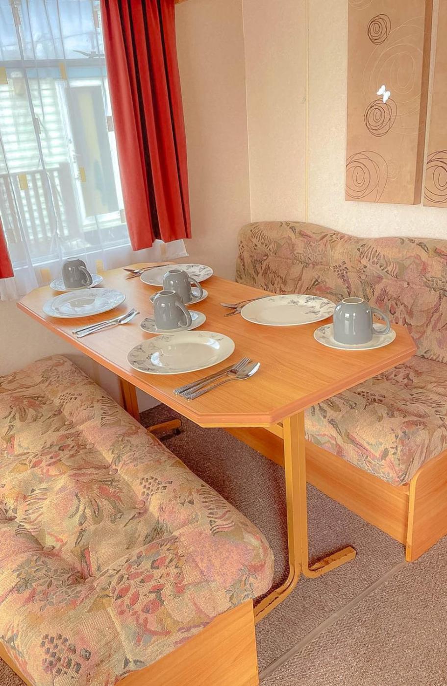 Caravan. This mobile home is comprised of 2 bedrooms, a seating area and 1 bathroom with a shower. The mobile home offers a dining area, a wardrobe, an electric kettle, heating, as well as a flat-screen TV. The unit offers 3 beds.